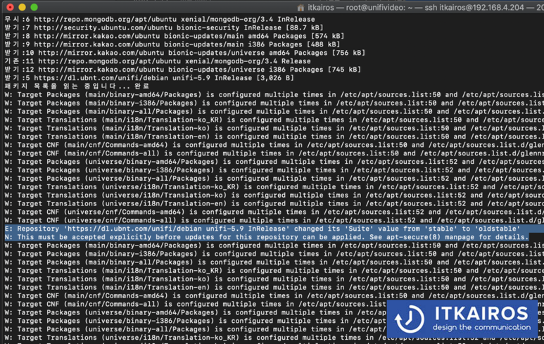 우분투 14.04에 운영 중인 UniFi 컨트롤러(또는 비디오)를 업데이트하고자 했으나 아래와 같은 에러가 발생하신다면 이 글이 도움이 되겠습니다.