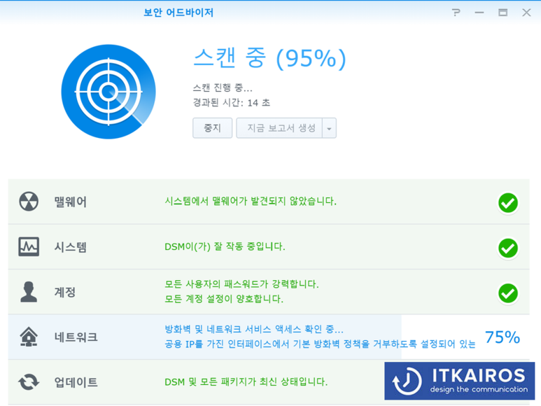 5. 복잡한 암호로 설정, admin 기본 계정 비활성화, 시놀로지 보안 어드바이저 실행하여 보안점검!