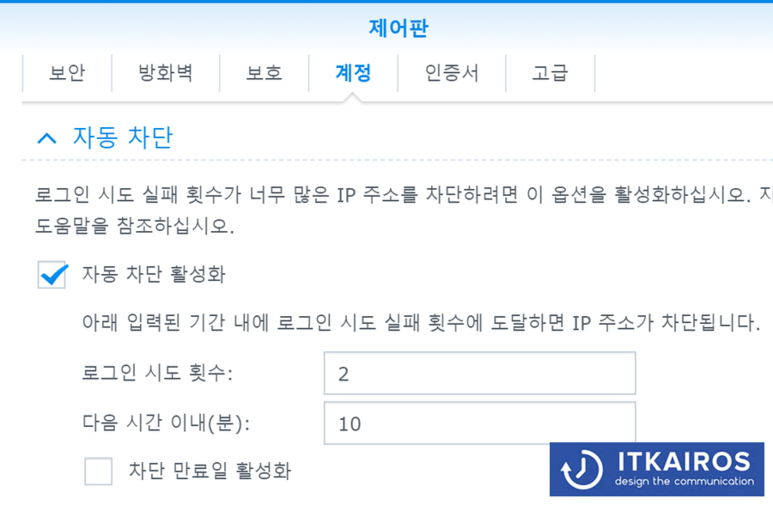 2. DSM 비정상 로그인 시 IP 자동 차단 기능 활성화