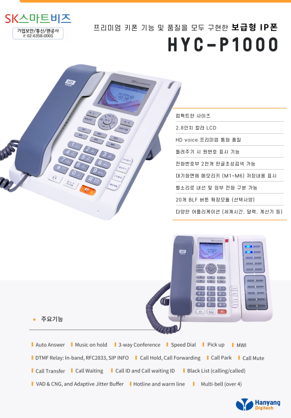 한양디지텍(P1000) : 컬러액정, 전화번호 저장 개수, HD 통화품질의 더 나은 기능을