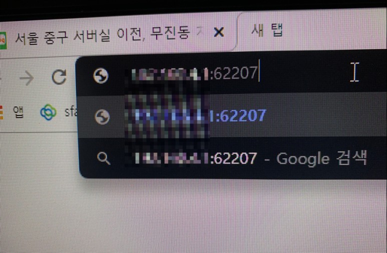 2) 인터넷 창을 띄워 주소 입력란에 "http://IP주소:62207"를 입력하여 줍니다.