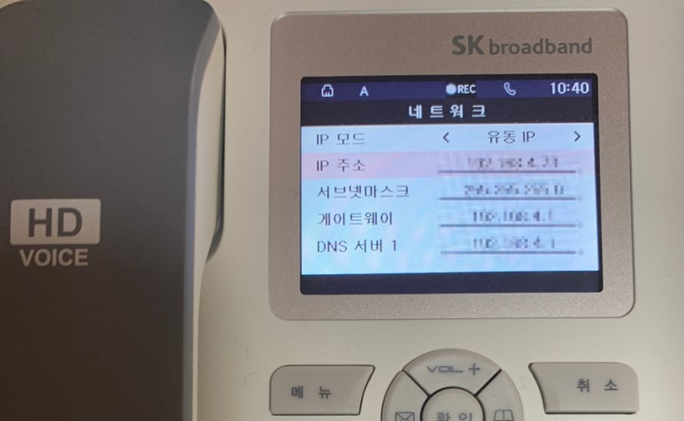 -IP주소 확인 : 메뉴>네트워크>IP주소란 확인