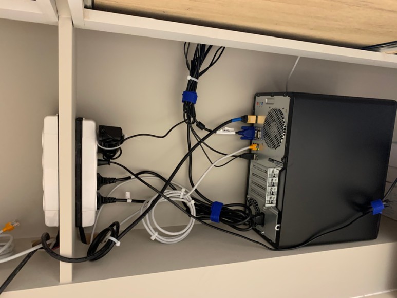 추후에 추가하신 디바이스들 때문에 전선들이 지저분하게 되어있었는데요, 점검 차 방문드렸을 당시 정리해드렸습니다. 사실 랜선 정리를 해드리려 했던 것이었으나 만지다 보니 다른 전원선들도 조금씩 정리를 도와드렸습니다.