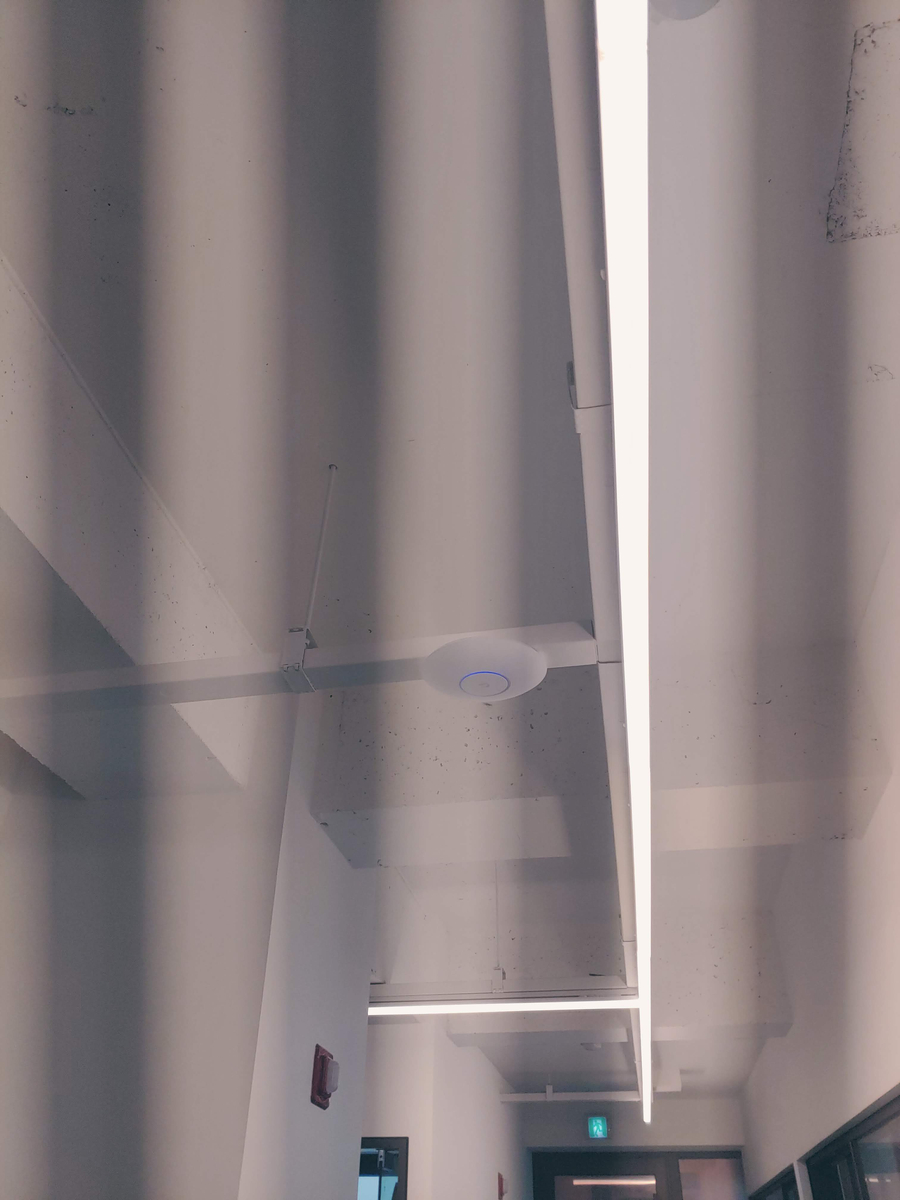 하나의 통합된 SSID로 각 층을 옮겨다녀도 끊김없이 무선 네트워크를 활용할 수 있습니다. 트레이를 통하여 전원선을 공급하였기에 깔끔한 마무리가 가능하였습니다. 각 층의 랜 테스트 및 주기 불량난 랜 포트 모두 해결해 드렸으며, 마지막으로 안정화까지 확인한 뒤 물러나도록 하였습니다. 이상입니다.