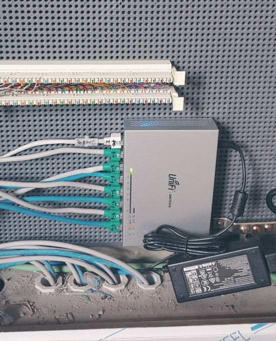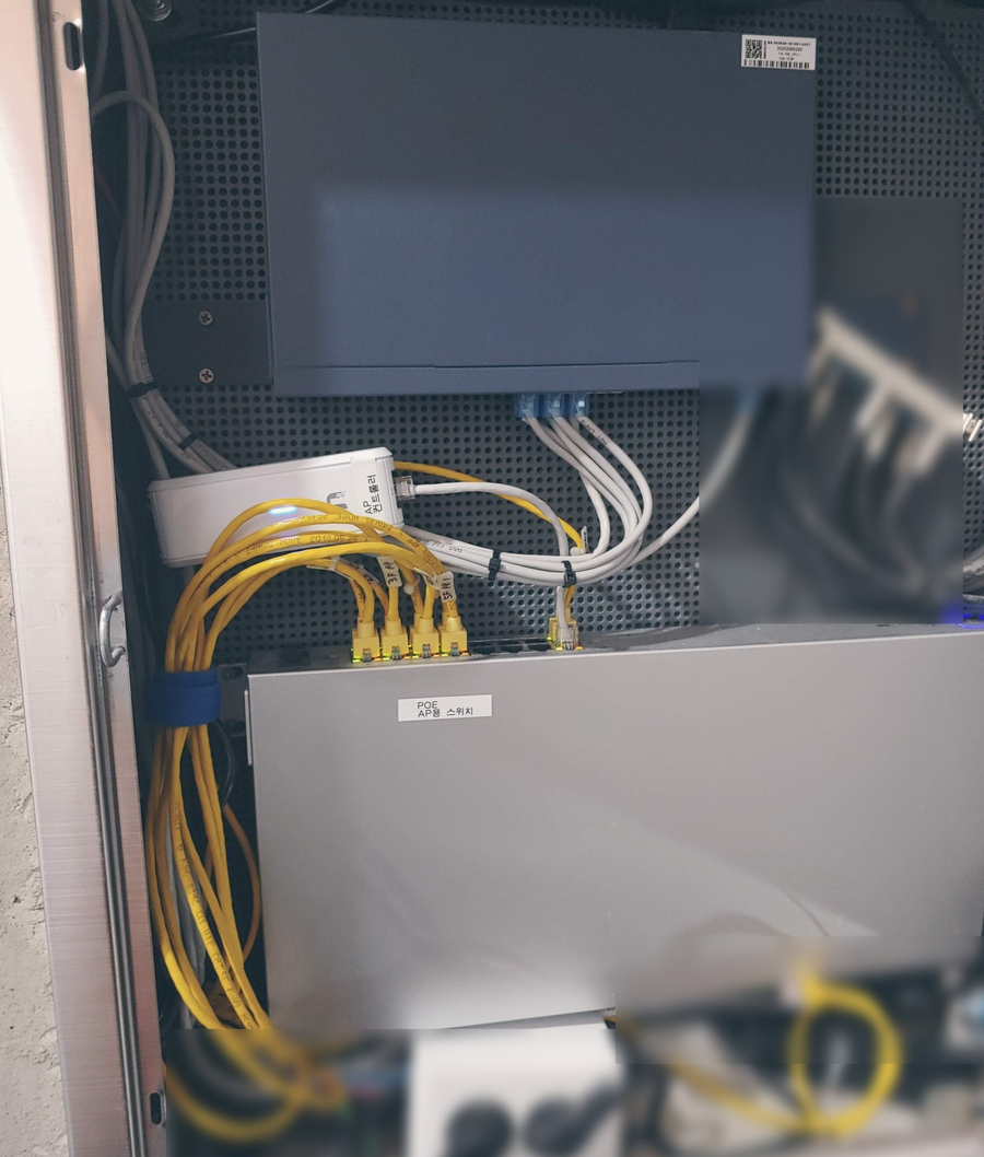 각 층 IDF함에 8P Hurb를 시설하여 각 층에서 포트를 최적화하여 사용할 수 있고, 각 층의 AP를 컨트롤 할 수 있도록 1층 MDF함에 시설된 컨트롤러에 통합배선을 통하여 연결하였습니다.