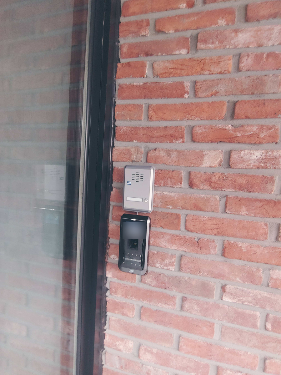 저희 고객사께서 공유오피스를 개업하시기 위해 신축한 건물의 모습과 그의 출입문을 철통같이 지킬 ADT캡스의 보안서비스 장비의 모습입니다.