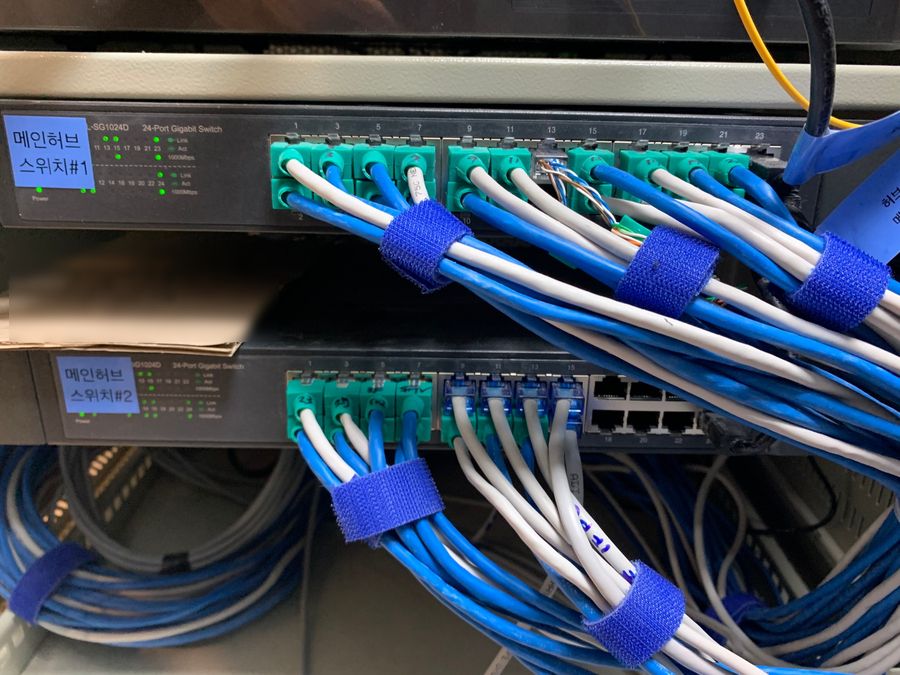 메인 위치에는 깔끔하게 안전하게 통신장비를 보관할수 있는 허브렉을 시설해드리고, 각 장비, 랜선마다 주기를(유지보수 용이)하였으며 인테리어 업체에서 단순 포설된 랜선의 단선 + 랜아울렛 불량 + 장애를 처리해 드렸습니다.