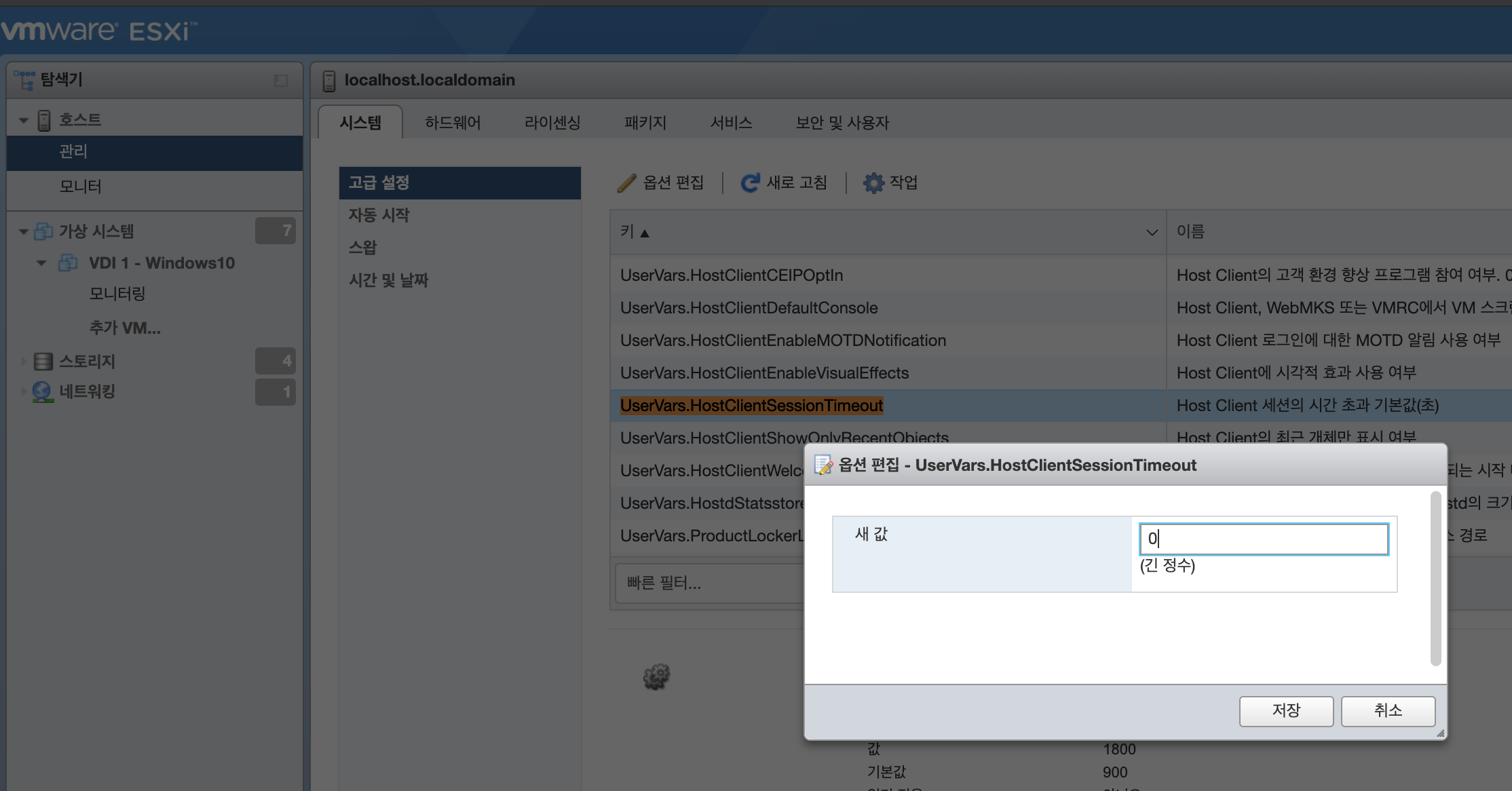 정보공유 ESXi 6.x ~ 7.0 Web Client 자동 로그아웃 끄기 iAdmin 2020. 7. 28. 22:37 관리 > 시스템 > 고급 설정 > UserVars.HostClientSessionTimeout 값을 0으로 설정하면 됩니다! 공유하기 게시글 관리 아이티카이로스 저작자표시 비영리 변경금지 (새창열림) '정보공유' Related Articles ActiveDirectory (그룹 정책) _ 카카오톡 차단 ESXi 7.0 ActiveDirectory 가입 후 사용자 권한 문제 SDP (Software Defined Perimeter)란? 나스 서버(NAS)란?