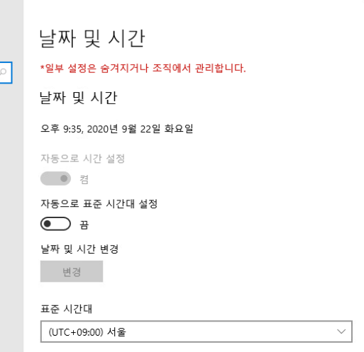 GUI 에서 설정이 되지 않습니다. * 일부 설정은 숨겨지거나 조직에서 관리합니다. 라고..