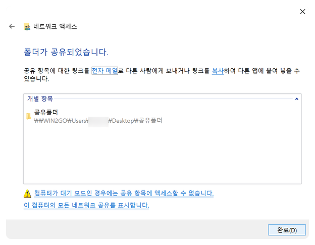 아래와 같이 공유설정이 완료됨.