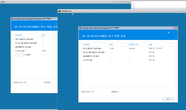 저는 ESXi 환경이므로 동시에 여러 개를 복원하고 있습니다.
