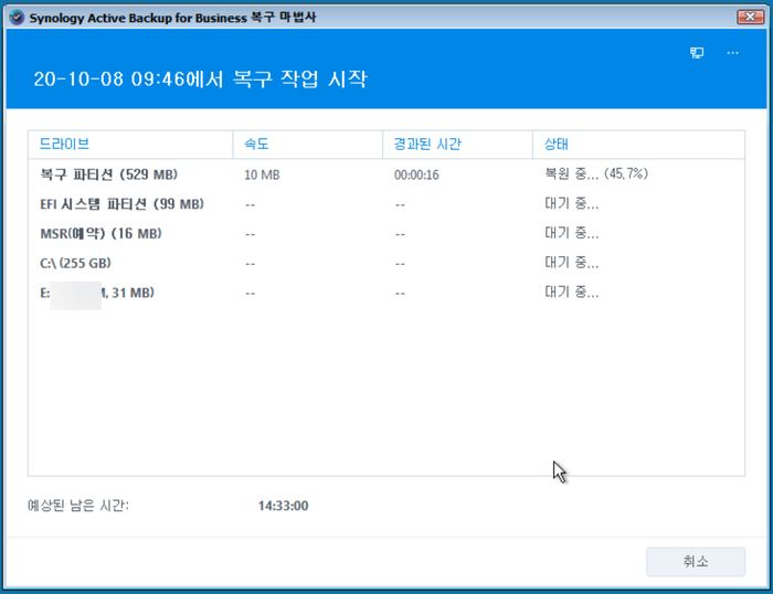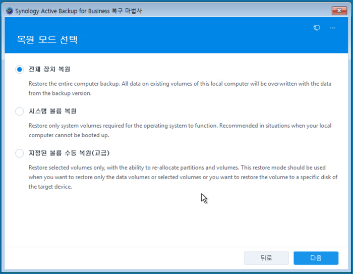 Synology Active Backup으로 백업한 컴퓨터 복원