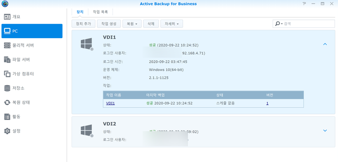 윈도우등 OS에 Synology Active Backup 에이전트를 설치하고 시놀로지 나스와 연동하여 백업을 수행할 수 있습니다.