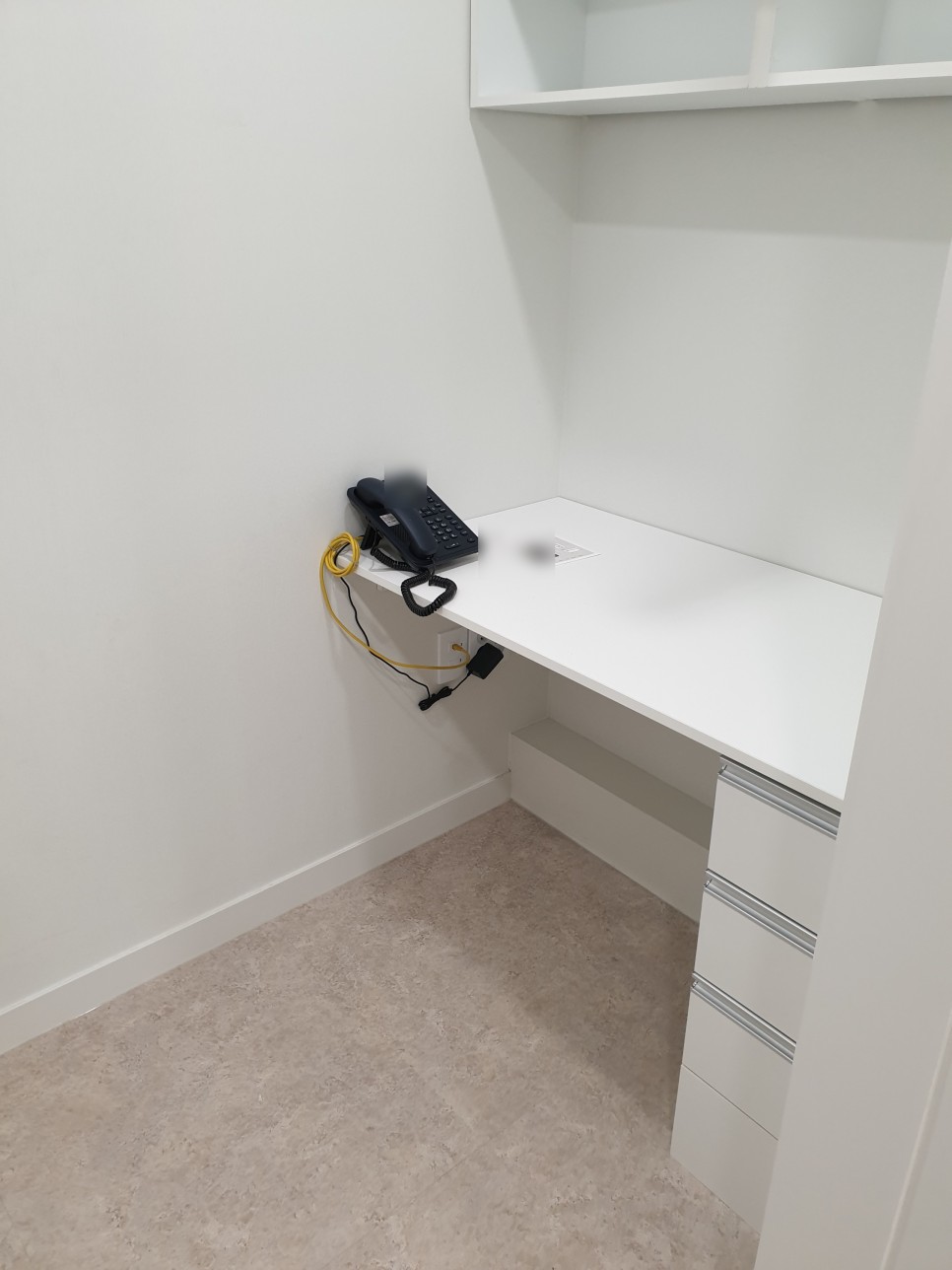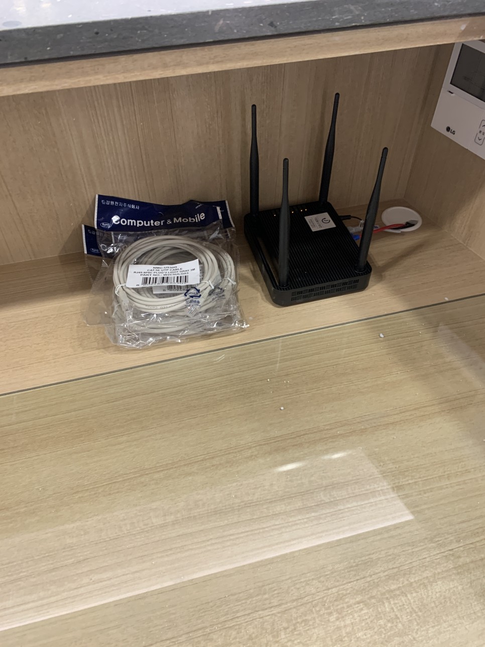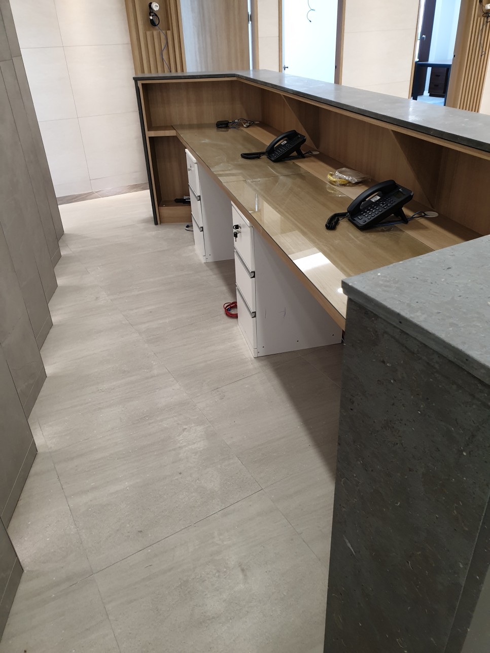 Mesh 기술을 이용하여 와이파이를 안정적으로 사용하실 수 있도록 접수대 위에 설치 및 설정해드렸습니다. 또한 접수대 아래 스피커 선, 물리보안 선이 어지러져 있는 부분을 깨끗이 정리해드렸습니다!
