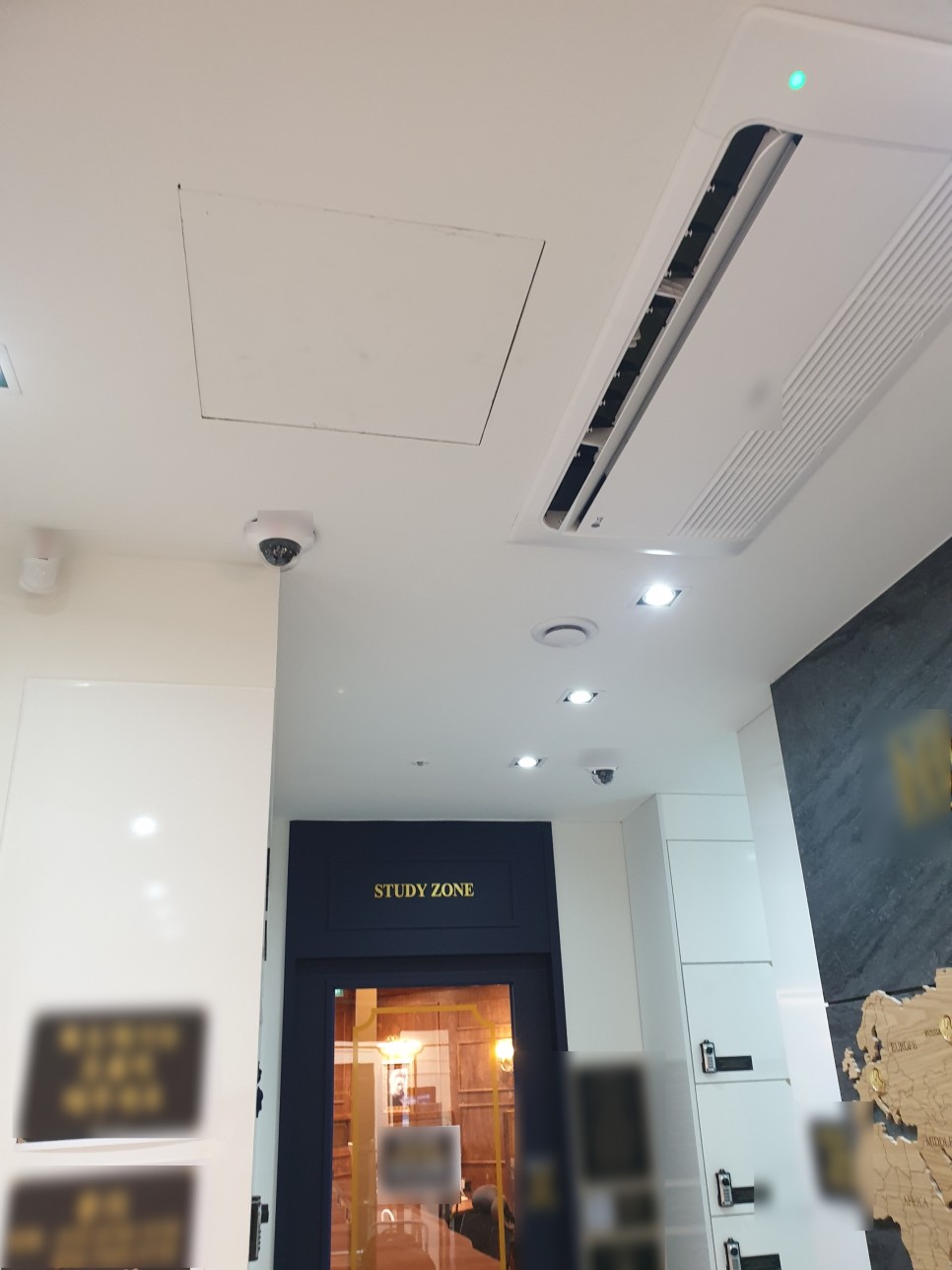 대부분 스터디카페는 무인으로 운영하시기에 영업장 내부에서 무슨 일이 있는지 실시간으로 확인하실 수 있도록 사각지대를 최소화하여 CCTV 설치 위치를 설계하여 제공드렸습니다.