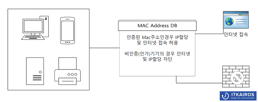- 비인증 네트워크(IoT) 장비가 연결되면 차단