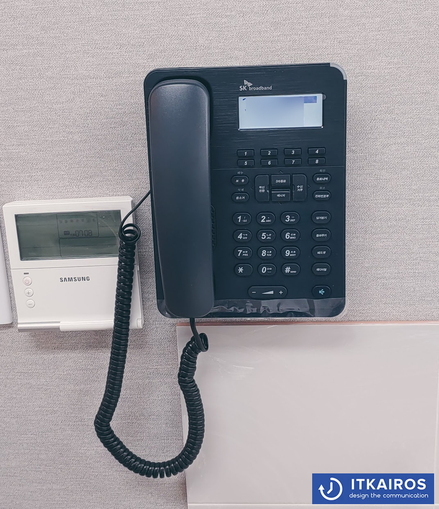 아래와 같이 인터넷 전화기를 벽에 달 수 있습니다.