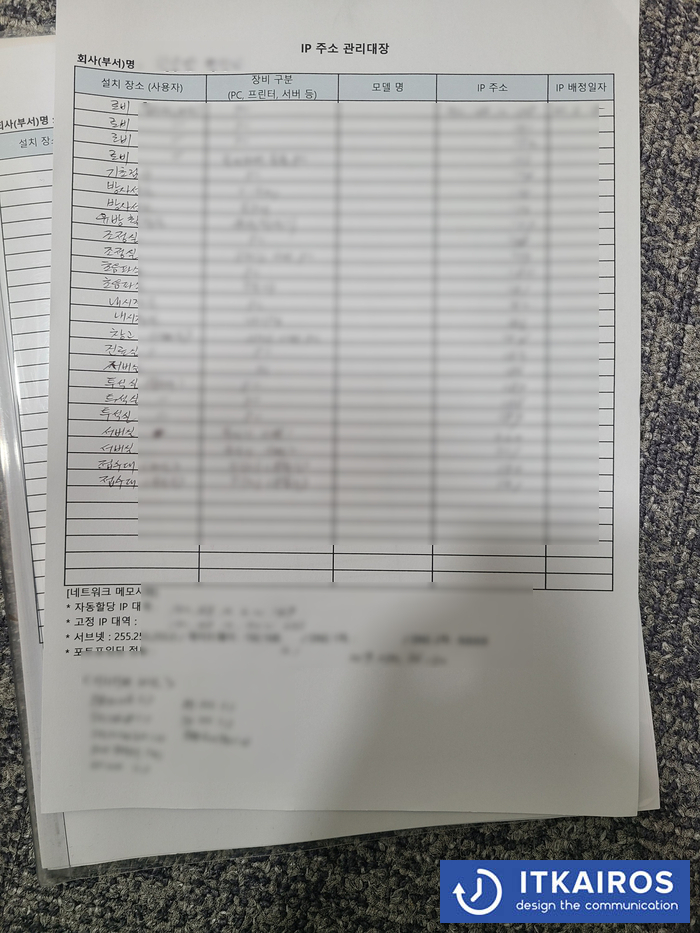 - 컴퓨터 및 서버들 IP셋팅 기술지원으로 혹시 모를 장애 대비