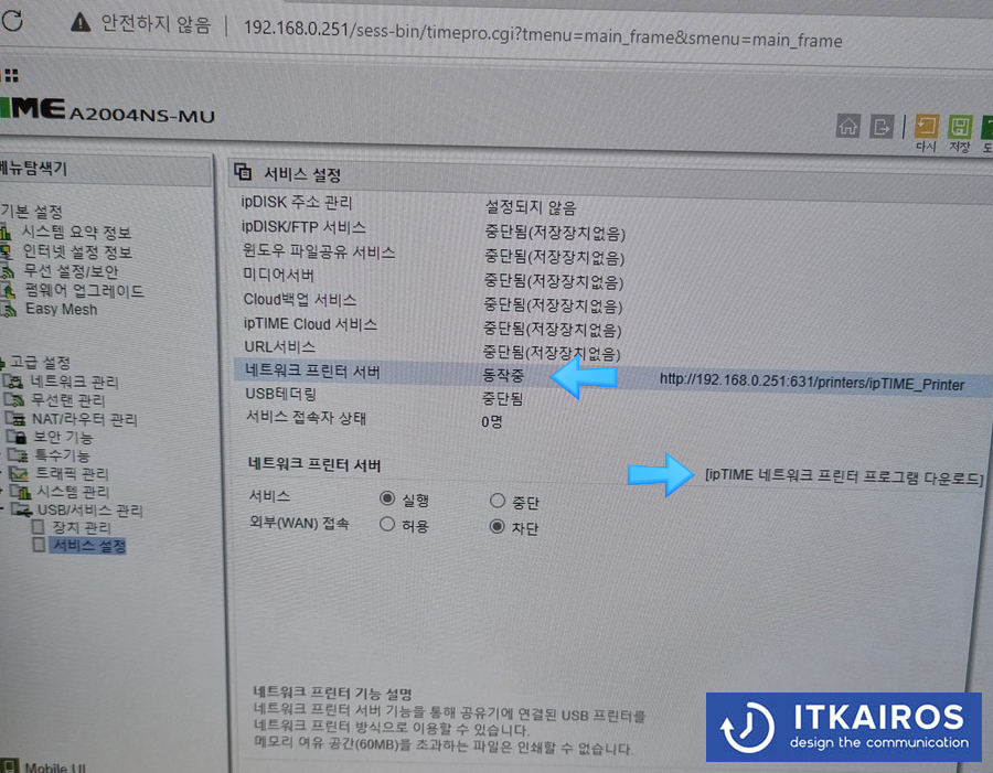 3) [ipTIME 네트워크 프린터 프로그램 다운로드] 클릭