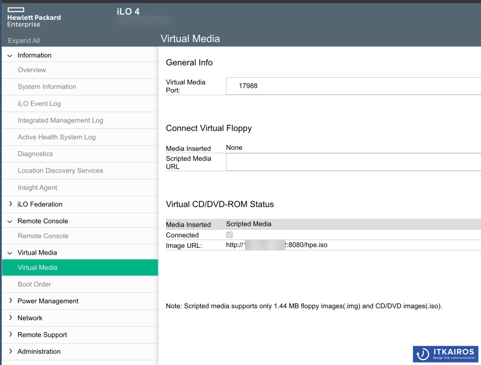 hp ilo Virtual CD/DVD-ROM / Scripted Media 기능 사용 시 url은 http만 지원되었습니다.