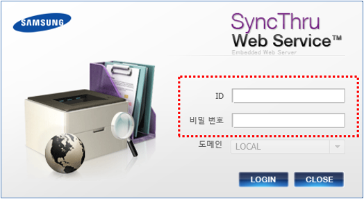 삼성 프린터 관리자 페이지 (SyncThru Web Service) ID 비밀번호