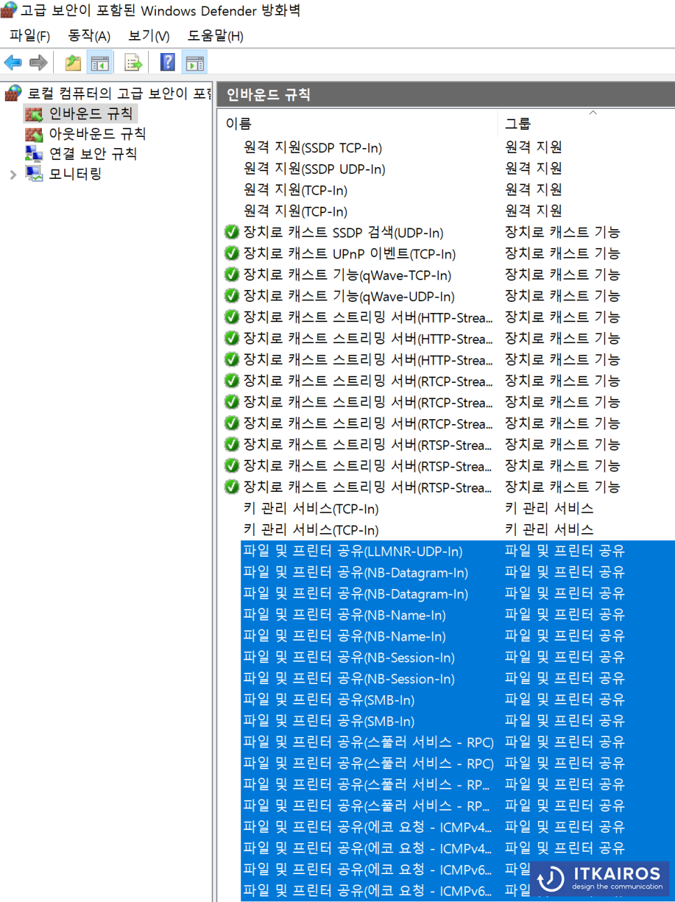 필요에 따라 고급 보안이 포함된 Windows Defender 방화벽에서 추가 설정을 합니다.