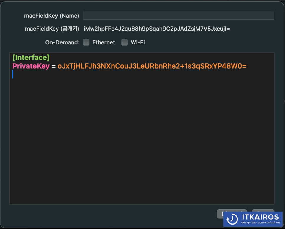 PrivateKey = WJesHPE1MIDDkTCsfjnv8AgDCzkw9PSOVE4nQQExgWO= <== 자동 생성됨