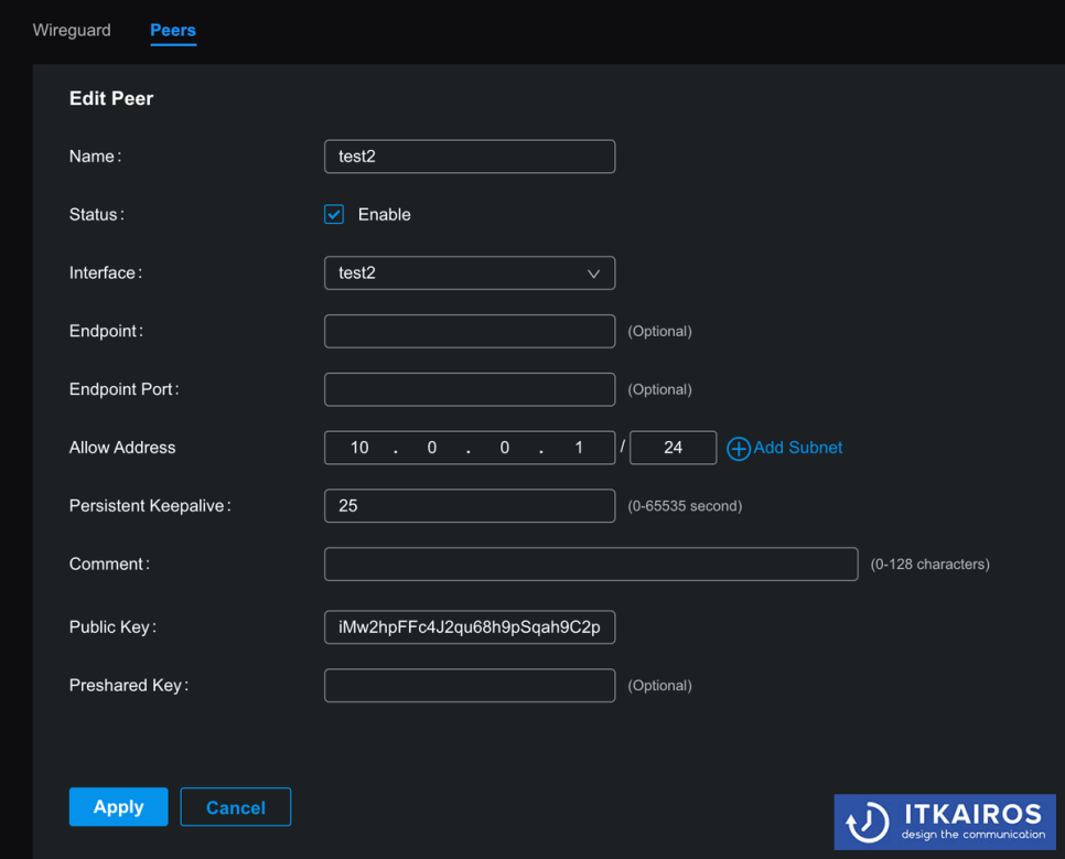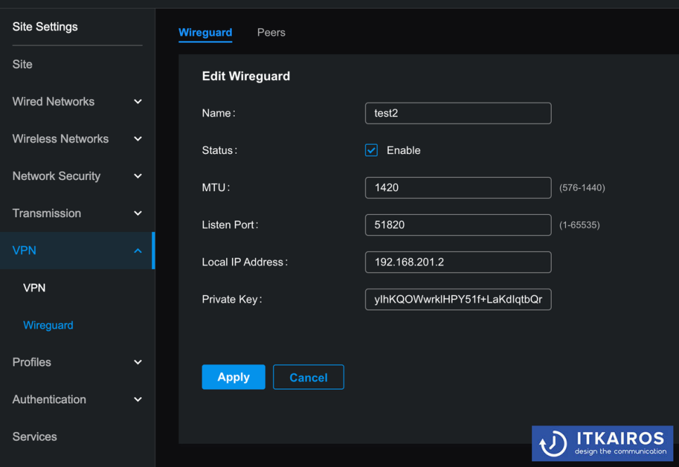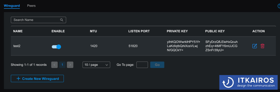- VPN > Wireguard > Create New Wireguard