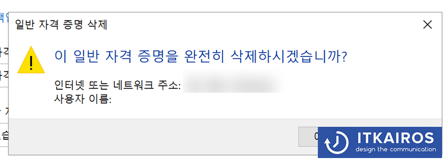 정보공유 나스 서버 공유 폴더(smb) 자동 접속 계정 비밀번호 삭제 iAdmin 2024. 2. 5. 17:54 윈도우키 누르시고 '자격'으로 검색하면 '자격 증명 관리자' 아이콘 표시됩니다. 실행해 주세요. Windows 자격 증명 클릭 후 일반 자격 증명 쪽에 나스 서버 관련 계정 삭제해 주시면 됩니다. 공유하기 게시글 관리 아이티카이로스 저작자표시 비영리 변경금지 (새창열림) '정보공유' Related Articles 윈도우 HIDPI 구형 프로그램 화면 깨짐(?) 틀어짐 해결하기 macOS에서 작성한 한글 파일명 자소 분리 이슈 해결하기(반디 네이머) CAT6 랜선만들기 (구형 /신형 8P Crimp EZ Tool / CAT.6 UTP STP EZ 전용) 핑로거, 핑로거(ping logger)
