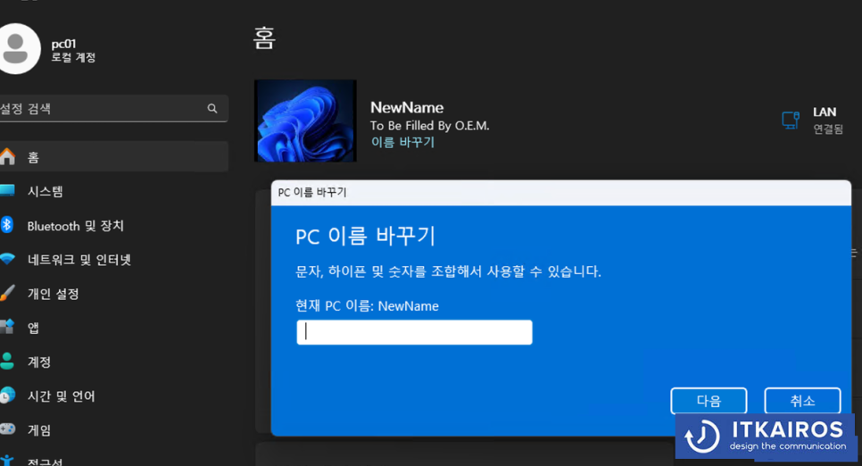 1. 동일 네트워크 상에 PC 이름이 중복되지 않게 구성