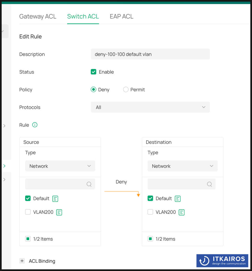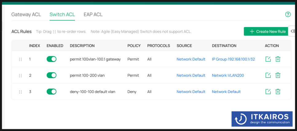 현재 Omada essential은 Switch ACL을 지원하지 않아 구성이 불가능합니다.