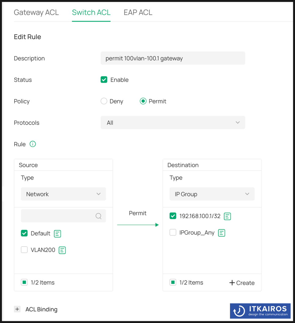 [2] 아래처럼 3개의 Switch ACL을 구성합니다. 아래 1,2,3 순서로 설정해 주세요